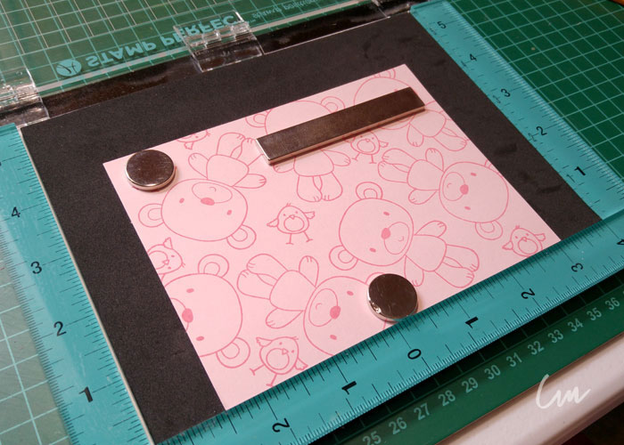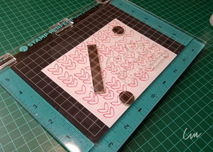 Por último para agregarle un mensaje, utilice una herramienta que en USA ya está fuera del mercado. Sin embargo hay varias diferentes que pudieran adquirir ya dependiendo de sus necesidades y presupuesto. Como la nueva plataforma de posicionamiento de Tim Holtz. ( Stamp Platform, Stamp Positioner Tool )